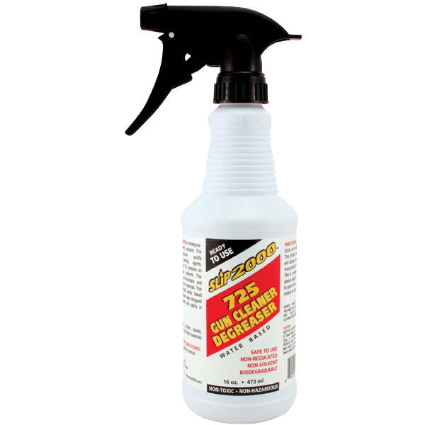 725 Gun Cleaner is our all-purpose cleaner. It will cut through cosmoline, grease, and grime. It can be sprayed on directly or used in parts washers, solvent tanks and ultrasonic cleaners!