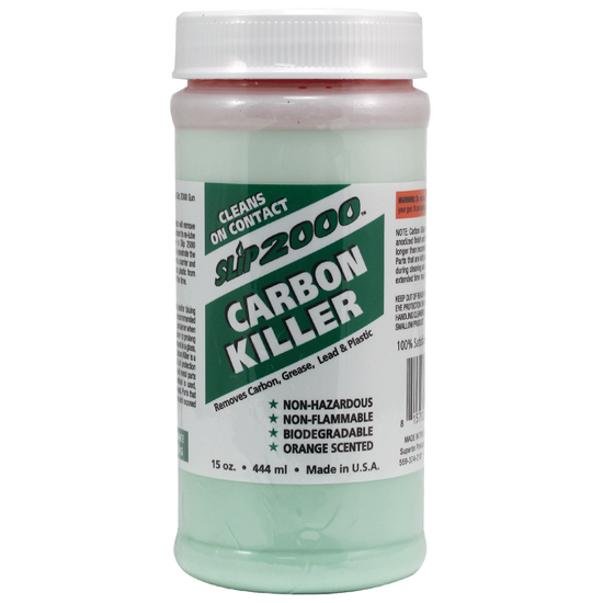 Carbon Killer removes carbon, grease, lead and plastic fouling on contact. It is an aggressive cleaner designed to make cleaning easy for even extremely dirty and neglected parts.