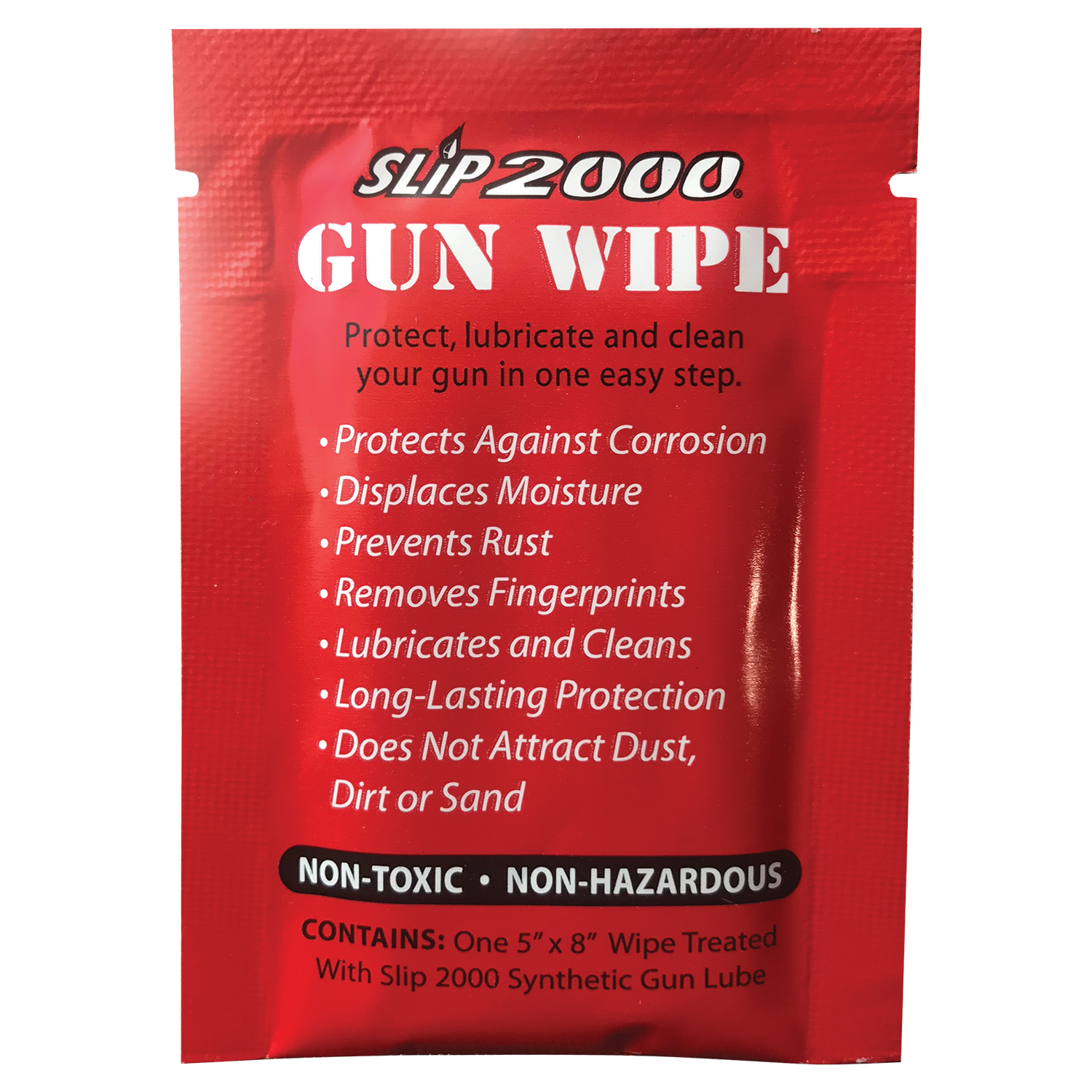 Each Slip 2000 Gun Wipe packet contains one 5" x 8" wipe treated with Slip 2000 Synthetic Gun Lube.