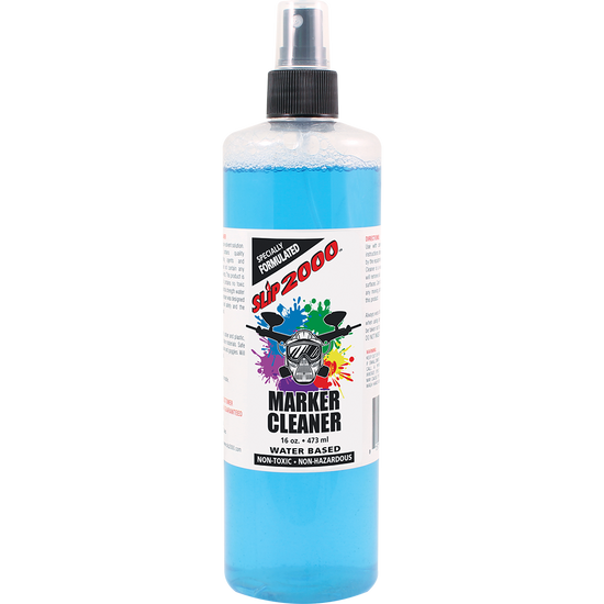 Marker Gun Cleaner is a biodegradable, non-solvent solution. This Product contains quality surfactants, wetting agents, emulsifiers and it contains no petroleum type solvents. This product is non-flammable and contains no toxic materials. This Industrial strength water based cleaner/degreaser was designed with your health and safety in mind. Makes an excellent paintball barrel cleaner.