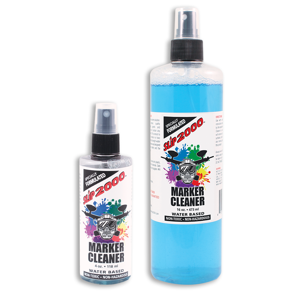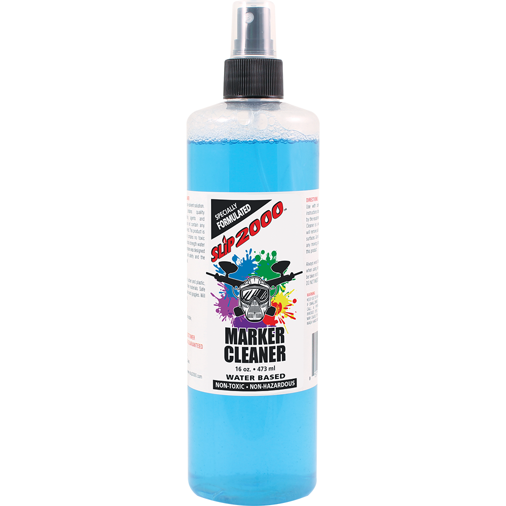 Marker Gun Cleaner is a biodegradable, non-solvent solution. This Product contains quality surfactants, wetting agents, emulsifiers and it contains no petroleum type solvents. This product is non-flammable and contains no toxic materials. This Industrial strength water based cleaner/degreaser was designed with your health and safety in mind. Makes an excellent paintball barrel cleaner.