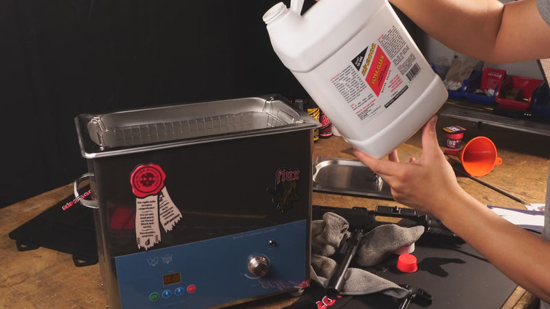 In just a few minutes, Ultra-Clean will strip tenacious carbon stains and simultaneously, crack open and crumble heavily encrusted deposits of carbon, grease, grime, gum and gunk on aluminum, magnesium, stainless steel and other metal gun parts. Included are trigger assemblies, bolts, actions, slide rails, gas pistons and all other components. Works exceptionally well on M1 - M16 - AR15 - 9 mm - 40 caliber weapons, Black Power breach plugs and all other fully automatic weapons.
