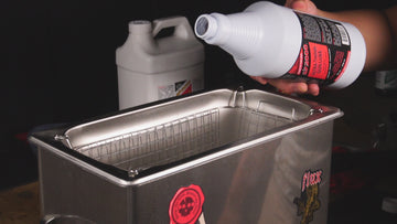 Remove cleaned parts from ultrasonic cleaning solution. Allow any excess cleaner to drain or drip off. Make sure you have cleared all compartments and areas that cleaner may have collected before placing parts in Ultra-Thin Gun Lube. Place cleaned parts in Lube and make sure all parts are completely submerged. Allow parts to soak in lubricant for 2-5 minutes. Drain and clear all extra lube before wiping down or allowing to dry. For best results Ultra-Thin Gun Lube should be used with Ultra-Clean ultrasonic cleaner.